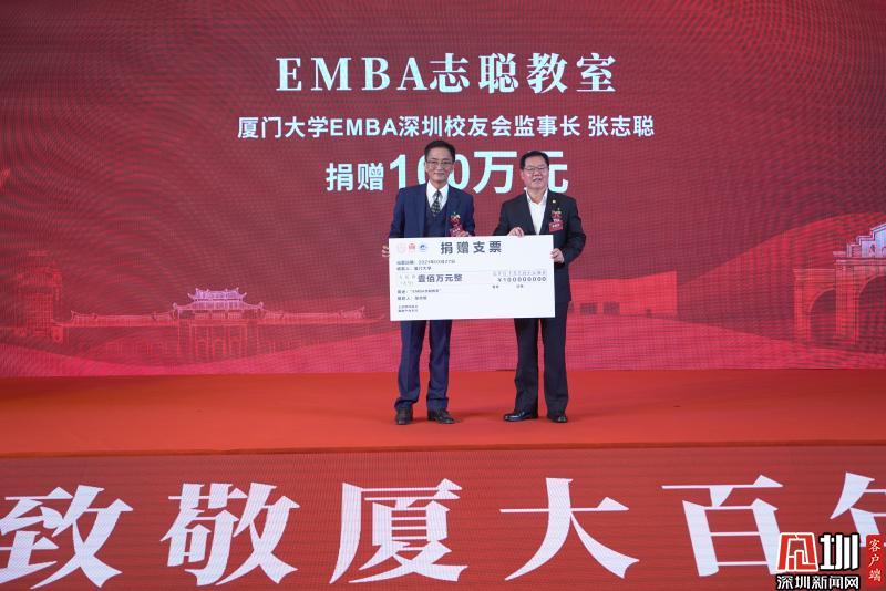 张志聪监事长捐赠100万元成立“ E MBA志聪教室”。这次祝贺百年厦大庆典、戈16出征仪式,又有20余位热心校友捐款捐物累计达5000万元。