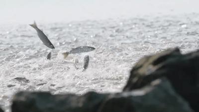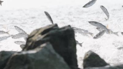 上千条鱼跃出海面自由嬉戏