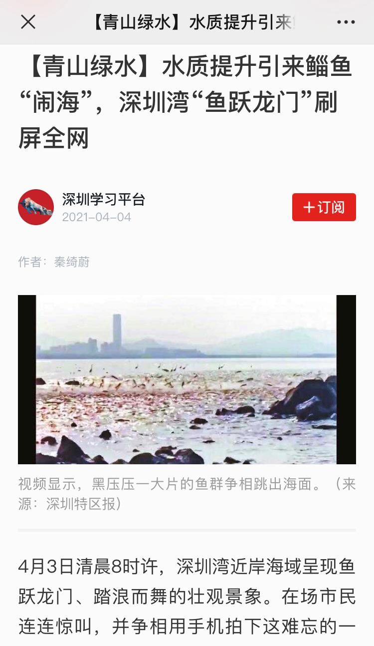 随着深圳水环境的不断改善