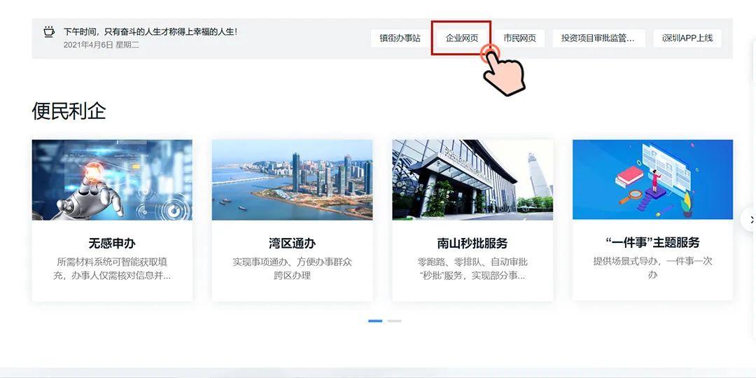 登录广东政务服务网,将行政部门切换至深圳市—南山区,点击“企业网页”,在“深圳企业专属网页”点击“证照中心”,即可查看企业电子证照信息。