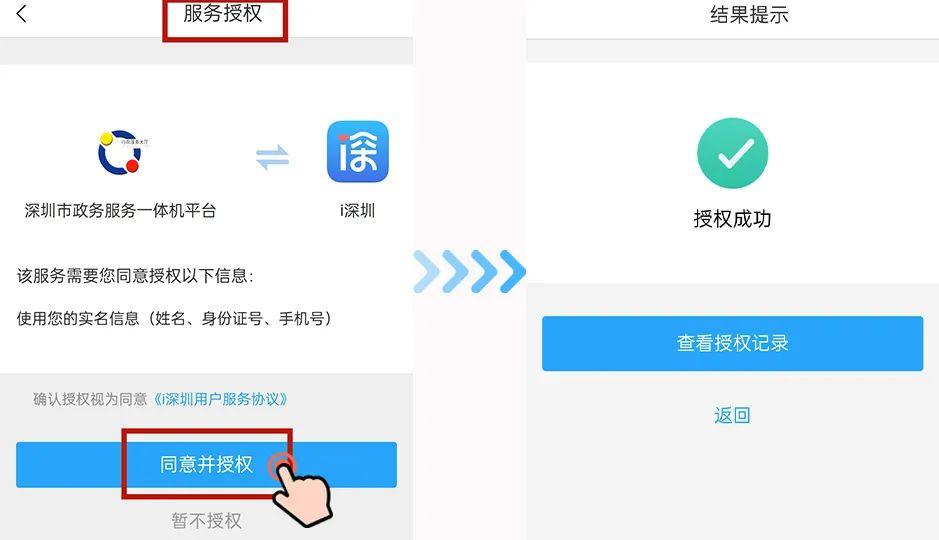 打开“i深圳”App,点击“我的”,点击右上角“一码通”,选择办事场景后,通过实名认证后即可查看“授权记录”。