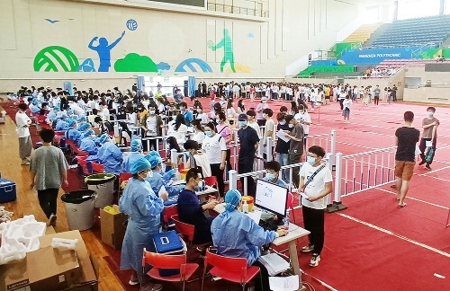 为保障居民有序接种,南山区构建以集中接种点为主、常规计划免疫接种点为辅的接种服务体系,所有社康预防接种门诊延长接种时间,基本满足居民接种需求。同时,南山区政府根据企业、高校、工业园区的需求,设置机动临时接种点,保障居民群众就近接种疫苗。南山区医疗集团和区卫生健康局所属各医疗卫生单位,抽调500余名医护人员支援临时接种点,每个接种点配置医疗急救人员,全方位保障居民接种安全。