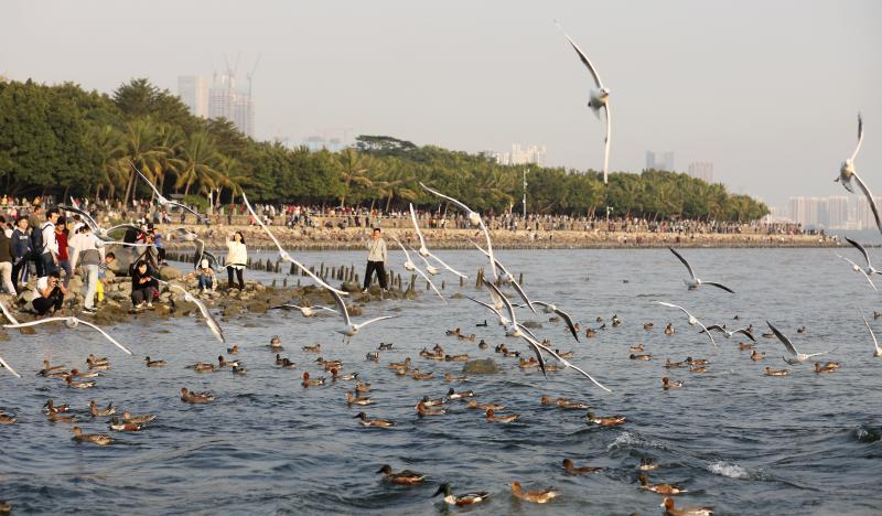 山水相依水城共融。以湖泊、滨海湿地、海湾、公园等景观为拍摄元素,航拍南山生态风光,体现南山区生态美景与城市共融,山水相依的滨海休闲的城市风光。 (拍摄角度为广角,航拍为佳)
