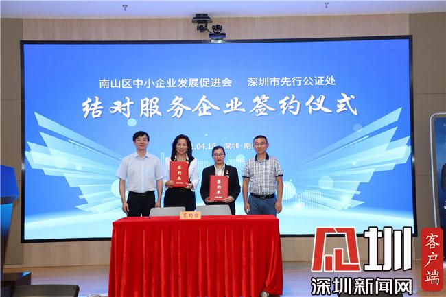 活动现场,中小企业发展促进会引入深圳市先行公证处作为会员服务单位,专辟绿色通道,为企业提供订制性、创新性、综合性公证法律服务。双方举行了结对服务企业签约仪式,共同帮助企业有效运用法律武器维护自身合法权益。