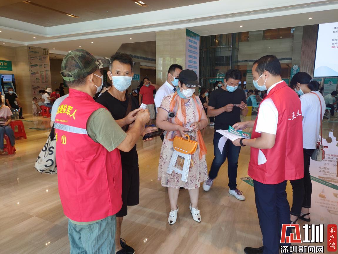 见圳客户端•深圳新闻网2021年5月27日讯(记者 王志明 通讯员 杨茹冯)近日,随着新冠疫苗接种人数激增,为保障接种点良好的就诊秩序,南山区桃源街道退役军人红星志愿服务队在区退役军人事务局的组织下,积极行动,主动到深圳禾正医院开展助力新冠疫苗接种志愿服务活动。