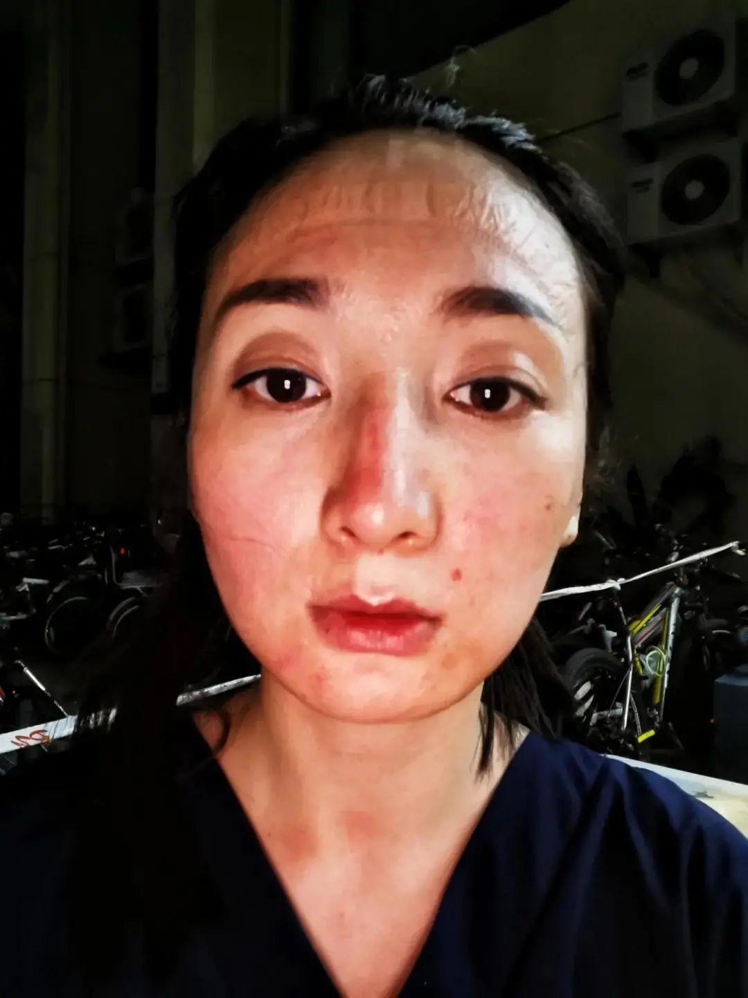 脱下N95口罩后的脸颊多了很多压痕