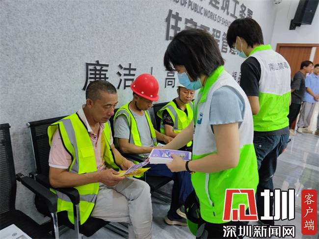 见圳客户端·深圳新闻网2021年5月31日讯(记者 王志明 通讯员 刘晓彤)5月31日上午,在南山区禁毒办的支持下,西丽街道温馨禁毒社工联合西丽派出所、中建一局在深职院留仙洞项目训练馆,面向建筑工人开展以“禁毒反诈齐步走,普法宣传入人心”为主题的禁毒反诈普法系列宣传活动,认真的把“我为群众办实事”落到实处。