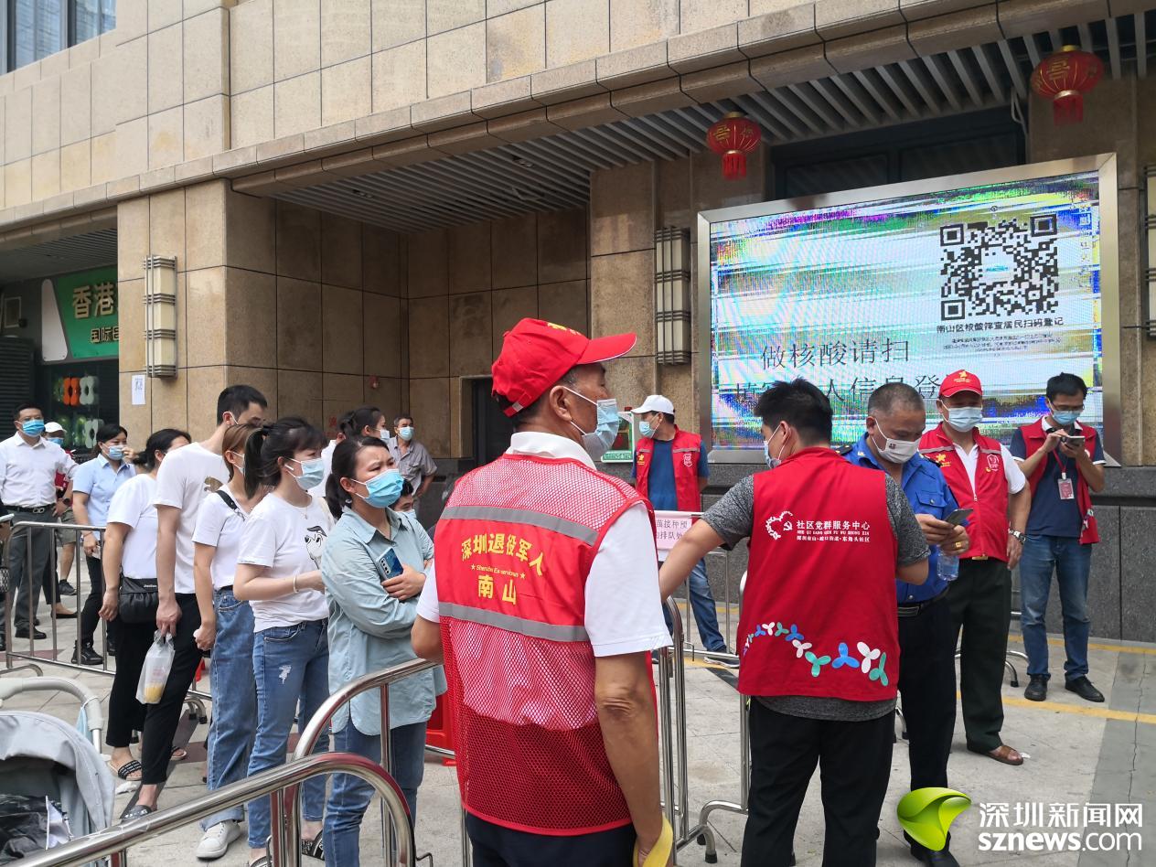 读特客户端·深圳新闻网2021年6月8日讯(记者 王志明 通讯员 李雪倩)为了做好防疫工作,保证核酸检测覆盖到每一位群众,6月8日,南山区蛇口街道退役军人红星志愿服务队来到东角头社区维持现场秩序,协助医护人员开展核酸检测工作。