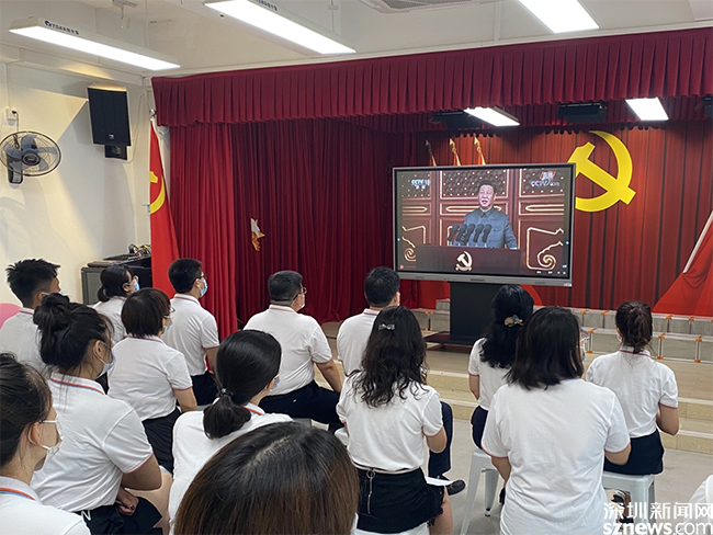 读特客户端.深圳新闻网2021年7月1日讯 (记者王志明)今天上午,庆祝中国共产党成立100周年大会在北京天安门广场隆重举行。中共中央总书记、国家主席、中央军委主席习近平同志发表重要讲话。南山区各界干部群众纷纷组织收听收看大会现场直播盛况。