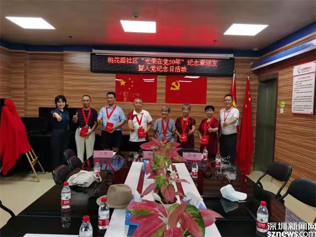 读特客户端·深圳新闻网2021年7月1日讯(记者 王志明 通讯员 张荷)为庆祝中国共产党成立100周年,进一步强化党员的身份意识和责任意识,加强党性修养,6月30日下午,桃花园社区党委在会议室举行庆祝建党100周年活动之“光荣在党50年”纪念章发放暨入党纪念日活动。街道驻点领导魏婷婷、离退休支部党员代表、优秀党员代表、预备党员代表共16人参加。