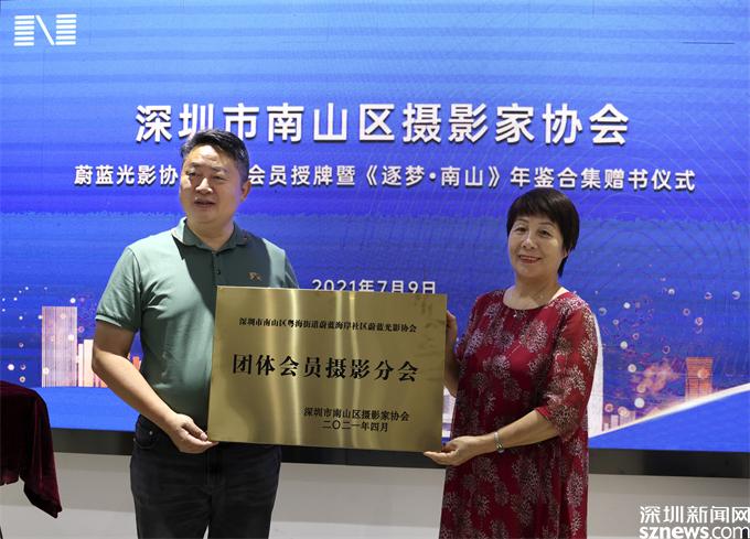 读特客户端·深圳新闻网2021年7月9日讯(记者 王志明 通讯员 梁天生)南山区摄影家协会又添新力量。7月9日,深圳市南山区摄影家协会在蔚蓝海岸党群活动中心,举行蔚蓝海岸社区蔚蓝光影协会团体会员授牌仪式暨《逐梦·南山》深圳市南山区摄影家协会2019-2021年鉴合集赠书仪式。