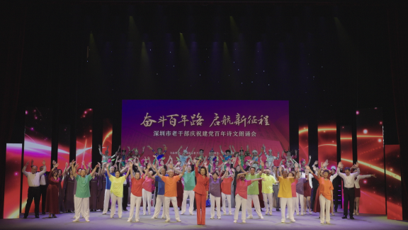 读特客户端•深圳新闻网2021年7月25日讯(记者 王志明)礼赞百年风华 ,讴歌千秋伟业。7月23日,在《梦想照亮中国》的激情朗诵中,由市委老干部局主办的“奋斗百年路 启航新征程——深圳市老干部庆祝建党百年诗文朗诵会”拉开了帷幕。 《梦想照亮中国》《不忘初心》 来自全市各领域的老干部代表200多人热情参与,一同穿越百年风雨 ,见证薪火相传,在榜样中汲取力量,奋勇前行。“南方+”平台对本场活动进行了全程直播,受到广大网友的关注与点赞,直播点击量近100万。 本次诗文朗诵会以百年中国共产党人的精神谱系为主线,共有“热血铸英魂、辉煌新中国、春天的故事、改革再出发”等四个篇章。通过“朗诵+”形式,完美融合音乐、舞蹈、书画、情景剧等多元舞台艺术,深情赞诵中国共产党波澜壮阔的百年征程,展示一代代共产党人矢志不渝、历久弥坚的精神追求。 第一篇章 | 热血铸英魂 “不能因为反动派绞死了我 就绞死了伟大的共产主义 我们的革命同志 如同红花的种子撒遍全国各地 共产主义必将得到光荣的胜利” 《热血铸英魂》篇章选取了革命战争年代的经典诗篇和革命英烈的故事,通过角色扮演生动再现了李大钊、叶挺、杨开慧、赵云霄、陈然、江竹筠等革命先驱“为有牺牲多壮志,敢教日月换新天”的大无畏英雄气概。 《热血铸英魂》 《追寻》 第二篇章 | 辉煌新中国 “中国人民从此站起来了 毛泽东的声音 响彻世界每一个角落 站起来的中国 意气风发 重整山河” 《辉煌新中国》篇章选取了新中国成立以来的经典诗篇和英雄人物故事。“抗美援朝”精神、“两弹一星”精神……展现了一代代中国共产党人勇往直前以赴之、殚精竭虑以成之,向着理想坚定前行的赤子之心。 《长津湖的冰雕》 《等待》 《屹立不倒的中国》 《祖国颂》 《信仰就是跟着党》 《没有共产党就没有新中国》 第三篇章 | 春天的故事 “在中国的季节里 春天是最美的 因为在14亿中国人的心中 流淌着春天的故事” 《春天的故事》篇章选取改革开放时期的经典诗篇和党员先锋故事,作为深圳改革开放的参与者、见证者、奋斗者和追梦人,每个人心中都有一段“春天的故事”。 《站在春天的门槛》 《我与深圳同成长,我与时代共前行》 《鹏城“圳”精神》 《天耀中华》 第四篇章 |改革再出发 “当脱贫攻坚的冲锋号 响彻祖国大地 扶贫的春风 吹开了人们紧锁的眉头 攻坚的决心 让祖国大地焕发出新的生机” 《改革再出发》篇章选取抗击疫情和脱贫攻坚战中先进人物典型的事迹,描述共产党人在新征程上的奋斗决心,朝着理想和目标,埋头苦干,以新担当新作为走好第二个百年奋斗目标新的赶考之路。 《我的党啊,我的国》 《桥》 《把初心写进泥泞的山路》 《信念》 《奋斗百年路 启航新征程》 《少年》 扫码回看 一起重温深圳老干部对党的深情告白
