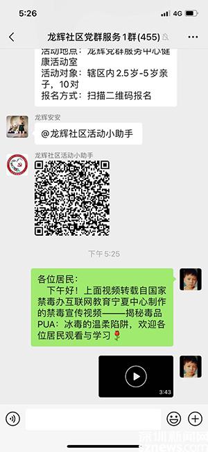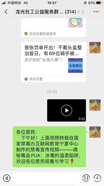 读特客户端•深圳新闻网2021年8月12日讯(记者 王志明 通讯员 谭舒晖)提起毒品,很多人都不会陌生。近期,一些公众人物因为吸毒入狱,让这一话题又一次被大家关注。因此,桃源街道禁毒温馨社工在8月10日下午,联合龙辉和龙光社区工作站人员转发宁夏禁毒网的视频,在线上开展“揭秘毒品PUA:冰毒的温柔陷阱”为禁毒主题宣传活动。