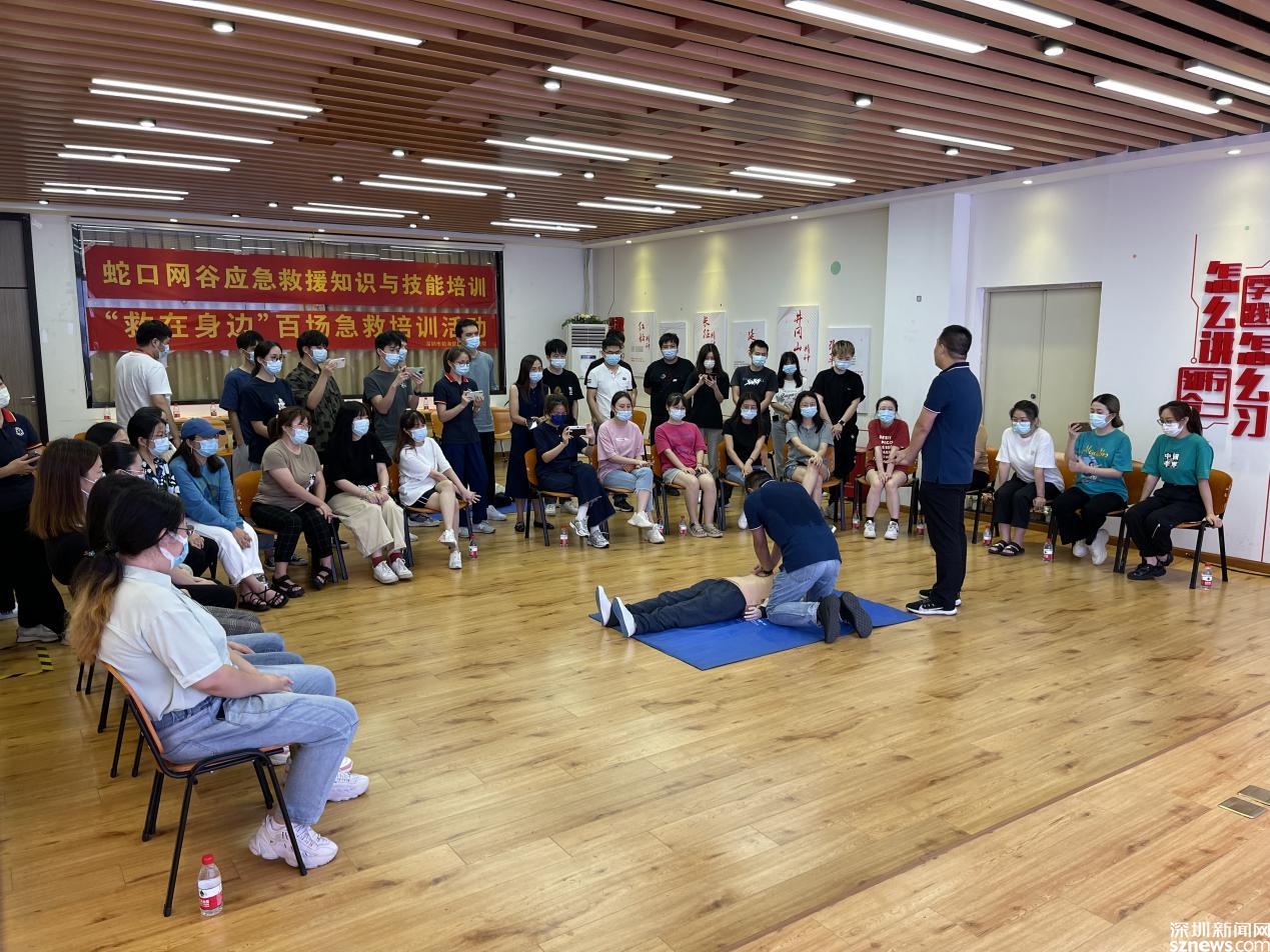 读特客户端•深圳新闻网2021年8月16日讯(记者 王志明)河南暴雨互助话题刷屏,各类应急指南层出不穷,河南水灾“大考”之后,应急救援亟需补课引人深思。近期蛇口网谷党群服务中心工作人员在园区走访过程中发现,企业工程师、设计师众多,加班成常态,身体处于亚健康状态。针对园区企业重视员工健康的需求,为进一步普及应急救护知识,提高园区企业员工急救技能,8月13日下午,蛇口网谷党委在蛇口网谷党群服务中心新时代大讲堂举行“应急救援知识与技能培训”活动,活动以园区企业党支部认领形式开展,深圳市喜喜仕景观及建筑规划设计有限公司等园区企业员工共计40余人参与培训。