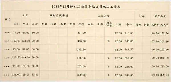 1983年蛇口工业区实行工资改革方案,突出“薪随岗定、岗动薪动”。表为1985年12月蛇口电脑公司职工工资表