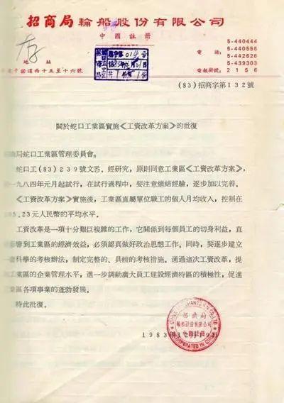 1983年关于蛇口工业区实施《工资改革方案》的批复
