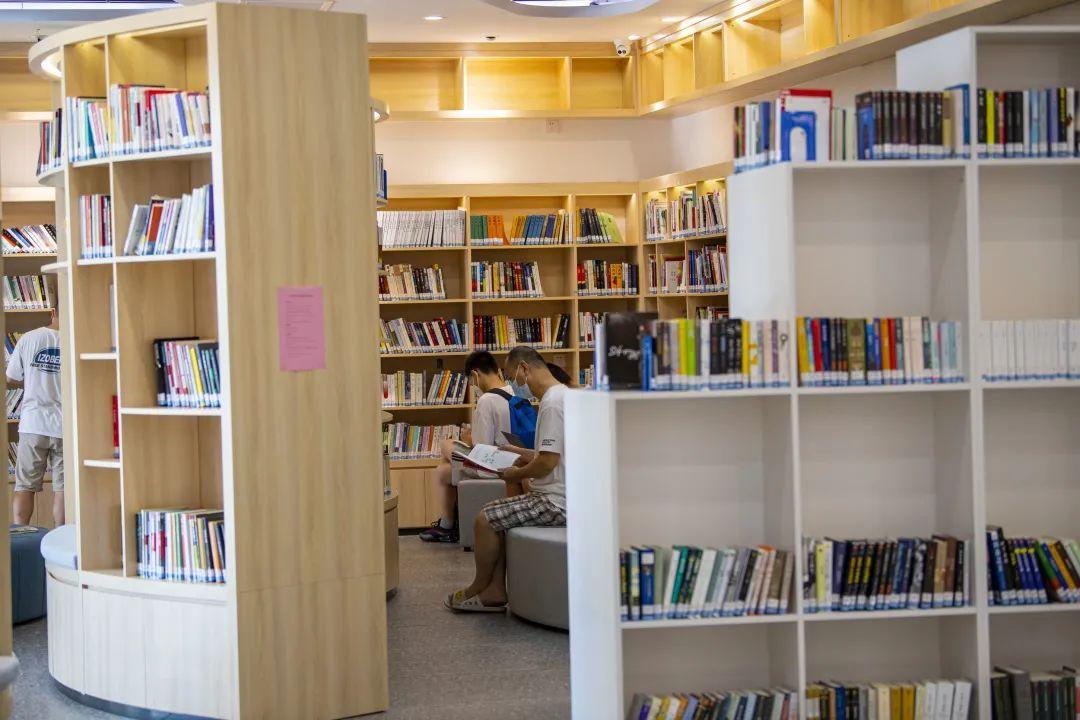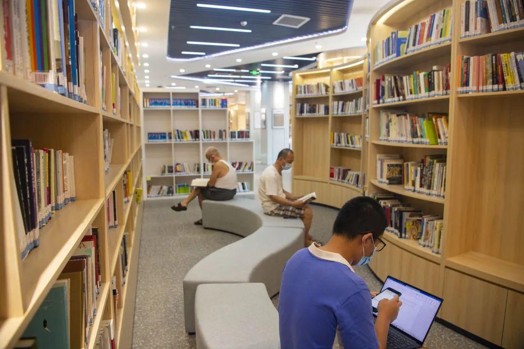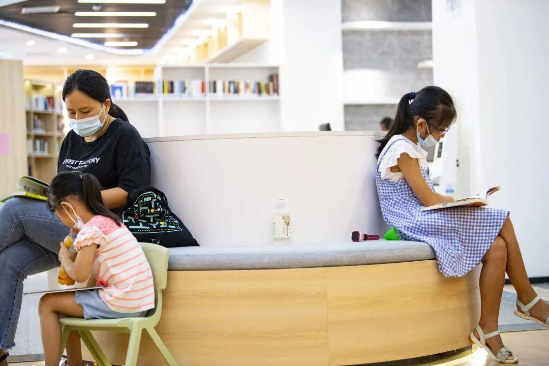 南山图书馆粤海街道分馆工作人员李怀玲介绍,自7月中旬开馆至今约一个月以来,分馆深受社区居民欢迎,平均每天接待读者100至120人次,经常上午开馆前已经有很多居民在排队。正值周六下午,不少青年读者在此学习、办公,老人看报读书,也有亲子家庭在少儿区津津有味看绘本。值得一提的是,粤海街道分馆还设计有一整面明亮的落地窗,视野开阔,采光充足,特别适合读书学习。