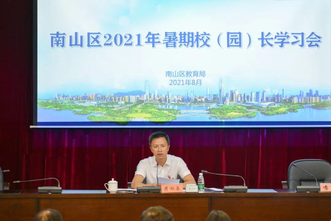 在南山区2021年暑期校(园)长学习会上,南山区教育局负责人围绕“观大势,应变局,开新篇,全力打造中国特色社会主义先行示范区基础教育先锋城区”主题,部署南山教育未来的工作思路,提出六大行动、五大工程、四个体系、四大举措,以及本学年度重点推进的十项工作。