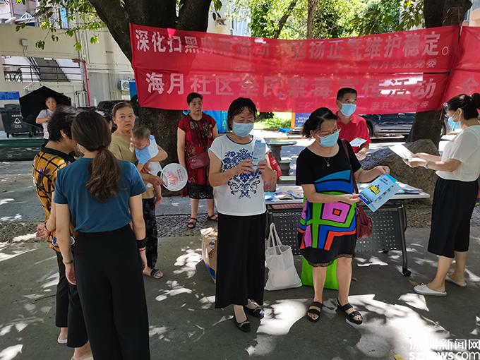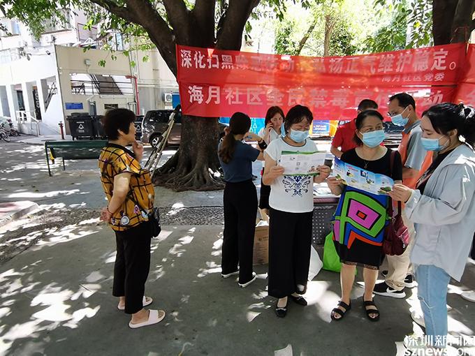 读特客户端·深圳新闻网8月25日讯(记者 王志明 通讯员 黄琴)为进一步提高社区居民禁毒意识和抵御毒品的能力以及对扫黑除恶专项斗争的知晓率及参与率。近日,海月社区工作人员在半岛花园A区广场开展了扫黑除恶和禁毒宣传活动,活动以发放宣传资料、现场讲解等形式,向社区居民和群众普及了相关知识。居民们纷纷驻足观看,饶有兴趣地倾听了工作人员的讲解,认真学习相关知识,相互沟通交流。