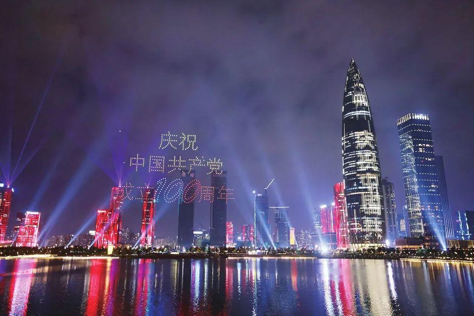 建党百年倒计时100天和“七一”前夕,用近千架无人机在深圳湾人才公园和蛇口“海上世界”(明华轮)上空举行表演,并在中央广播电视总台《星星之火百年流光》和央视新闻频道《东方时空》栏目播出,带领现场和全国观众重温中国共产党百年风雨兼程岁月,在线观看近80万人次。