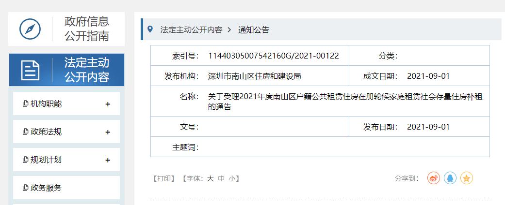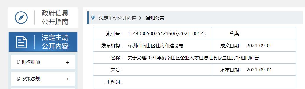 刚刚!南山区住房和建设局发布:《关于受理2021年度南山区户籍公共租赁住房在册轮候家庭租赁社会存量住房补租的通告》《关于受理2021年度南山区企业人才租赁社会存量住房补租的通告》。