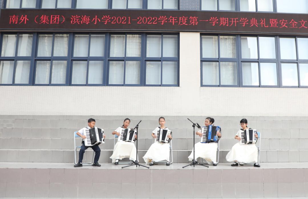 通过开学彩虹门走入校园,曾获得2021海南博鳌国际手风琴艺术节荣国金奖的手风琴社团为你演奏《花儿与少年》,快来南外滨海小学感受一下艺术的气息。