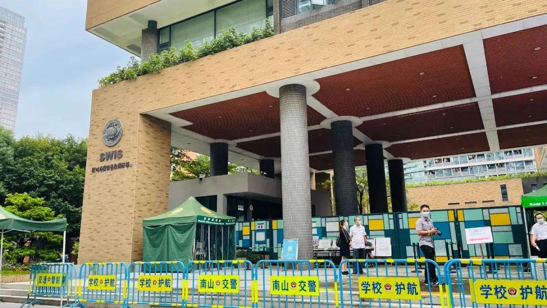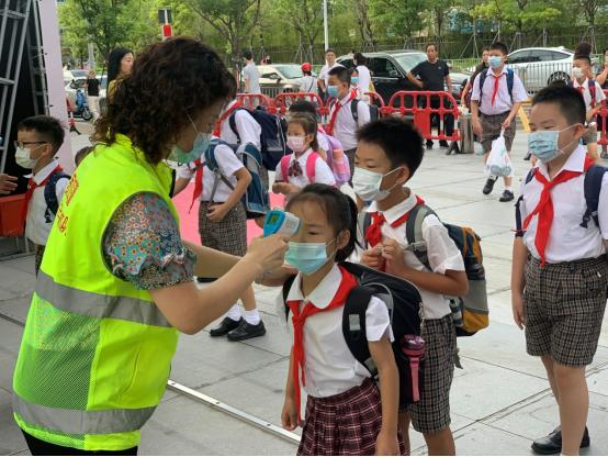 深圳外国语学校国际部生源为外籍及港澳台人士子女,现有幼儿4岁班至高中12年级学生千余名。入校时测温已成为学校常态化疫情防控之举。校门口入校通道依身高划分,每条通道上的人脸测温仪高度也作相应调整,相距1米等距线保证有序入校,手部消毒站设置于通道两旁。
