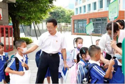 8月31日下午,南山区委副书记、区长黄湘岳率队到蛇口育才教育集团育才二小等学校,检查秋季开学准备及校园疫情防控工作。
