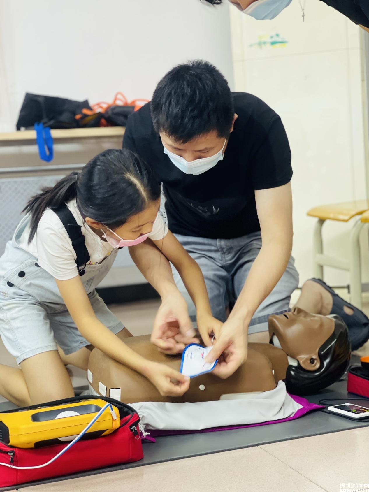 参与项目教学的团队成员全部是广东省和深圳市红十字水上救援队的教练,他们围绕着危险水域的识别、漂浮物的制作、延伸物的使用、水中抽筋自解、常见溺水急救误区、不同溺水者的救护方法等内容,为到场的父母和孩子们展开了清晰易懂的讲解和轻松有趣的演示,并鼓励父母和孩子一起动手练习,在学习知识的同时更增进了亲子感情。
