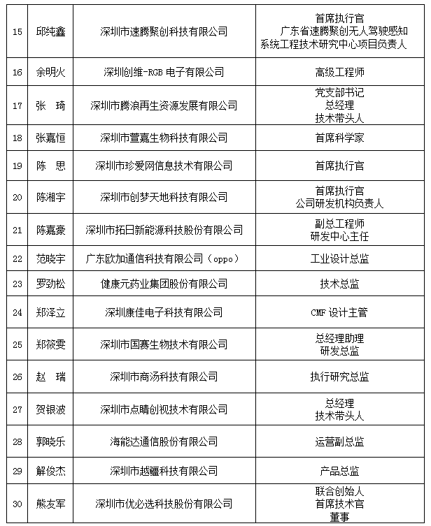 读特客户端•深圳新闻网2021年9月17日讯(记者 王志明 通讯员 沈亚红 李嘉鑫)由中共南山区委、南山区人民政府、深圳市总工会指导,南山区总工会主办,南山区人才工作局、区科技创新局、区人力资源局、区工商联、区企业服务中心联合协办的2021年南山“十大创新工匠”评选活动初评工作现已结束,年度三十强名单正式出炉。