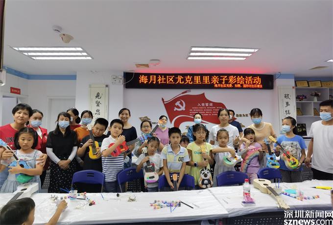 近日,海月社区党委、妇联、国际化建设联合组织了一场尤克里里亲子彩绘活动,工作人员邀请15组亲子家庭在社区党群服务中心相聚一场,体验艺术手作与浪漫音符的完美交融,通过老师耐心讲解,小朋友能快速上手,发挥想象力、创造力、思维能力,活动增强儿童对色彩的感知能力以及手指动作协调能力得到有效结合。
