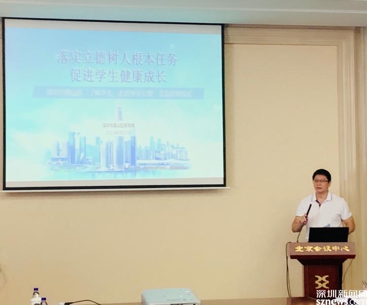 读特客户端•深圳新闻网2021年9月29日讯(记者 王志明 通讯员 张丽虹)9月29日,南山区教育科学研究院院长陈坚、区教育局基础教育科科长刘世琦等一行4人,参加由中国教育科学研究院主办的2021年中国教育科学论坛——“教育高质量发展的挑战与应答”。会上,陈坚做《落实立德树人根本任务促进学生健康成长》主题报告。