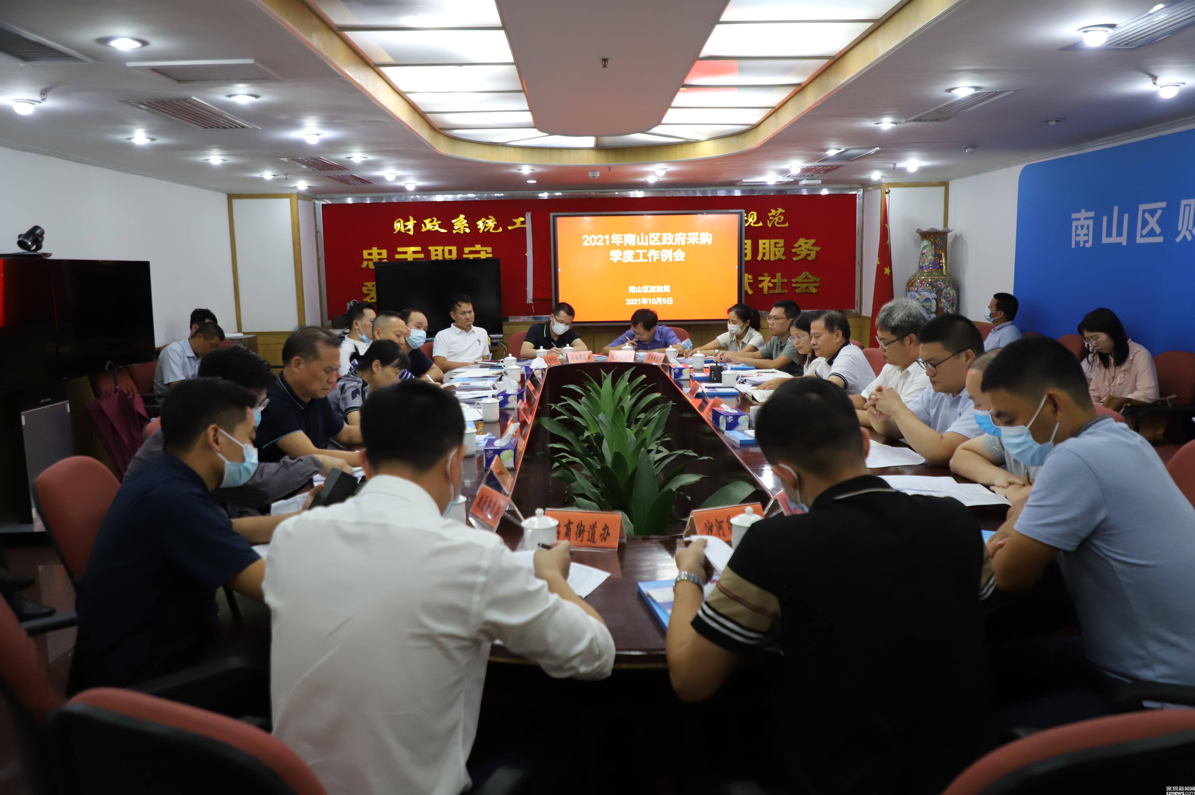 读特客户端•深圳新闻网2021年10月11日讯(记者 张小臣 通讯员 张伟)近日,南山区财政局在区劳动大厦组织召开第三季度政府采购例会。7个区直单位和8个街道办事处分管政府采购工作的领导及科室负责人以及深圳交易集团有限公司南山分公司负责人参加会议。