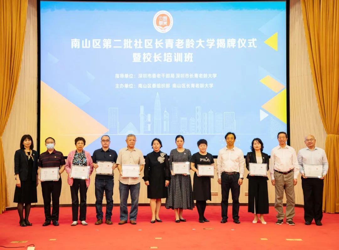 10月14日上午,南山区第二批社区长青老龄大学揭牌仪式暨校长培训班在南山区委党校大厦二楼报告厅举行。至此,南山区共有95所长青老龄大学,“区-街道-社区”三级长青老龄大学实现了应建尽建、办学服务100%全覆盖。