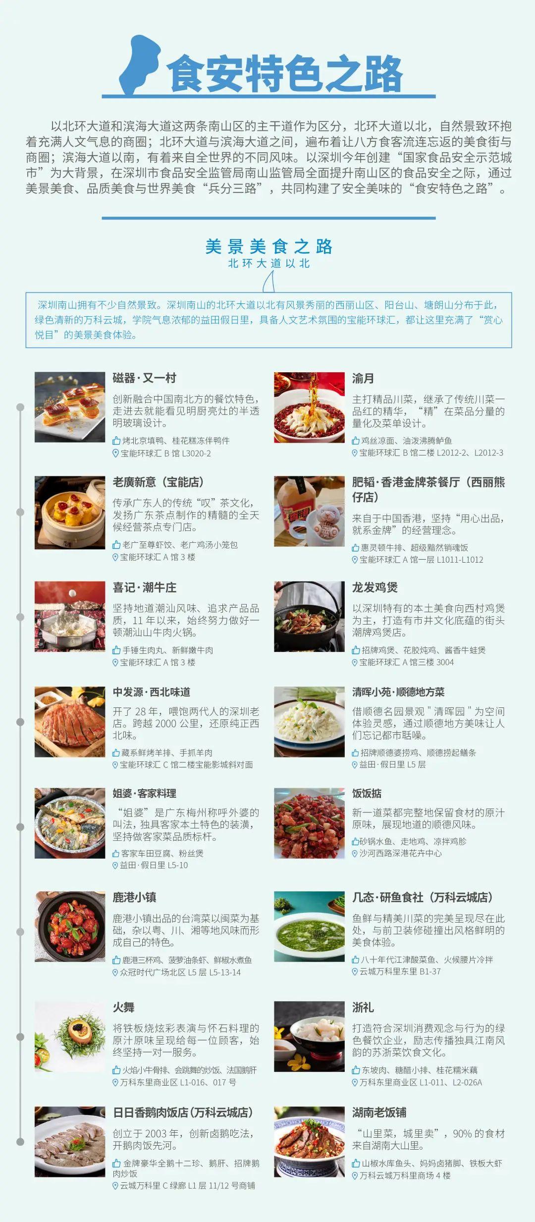 地图设计时尚大气,内容布局清晰合理,特别是3条“食路”——食安特色之路的推出,为想了解南山美食特色的市民提供了非常有价值的资讯。