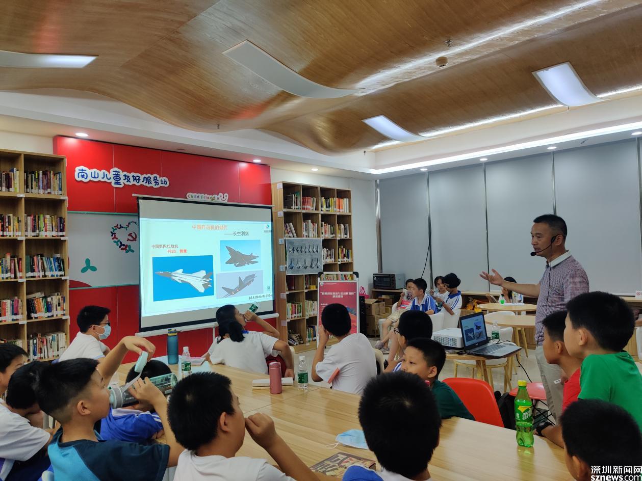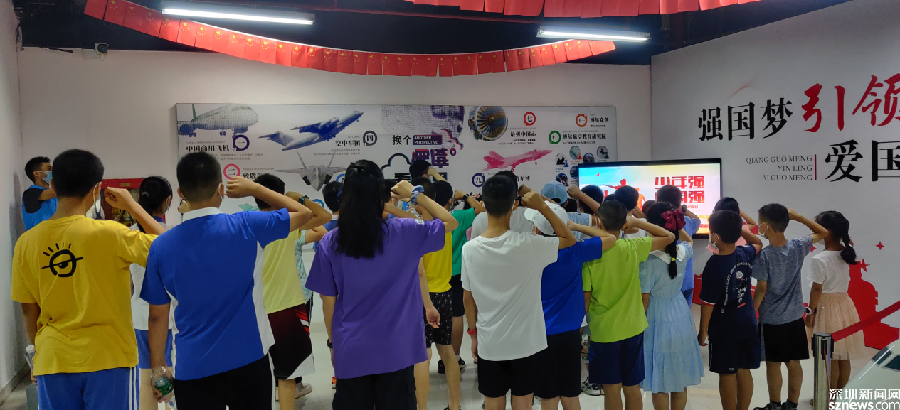 7月10日上午,粤海街道科技园社区的青少年儿童亲身来到博尔国防科普基地参观,并进行少年强宣誓,活动中由讲解员带领参观国防航空科普展厅,其中包括中国民航大飞机区、军事沙盘区、航空先驱英雄区、航母区、发动机区等等。