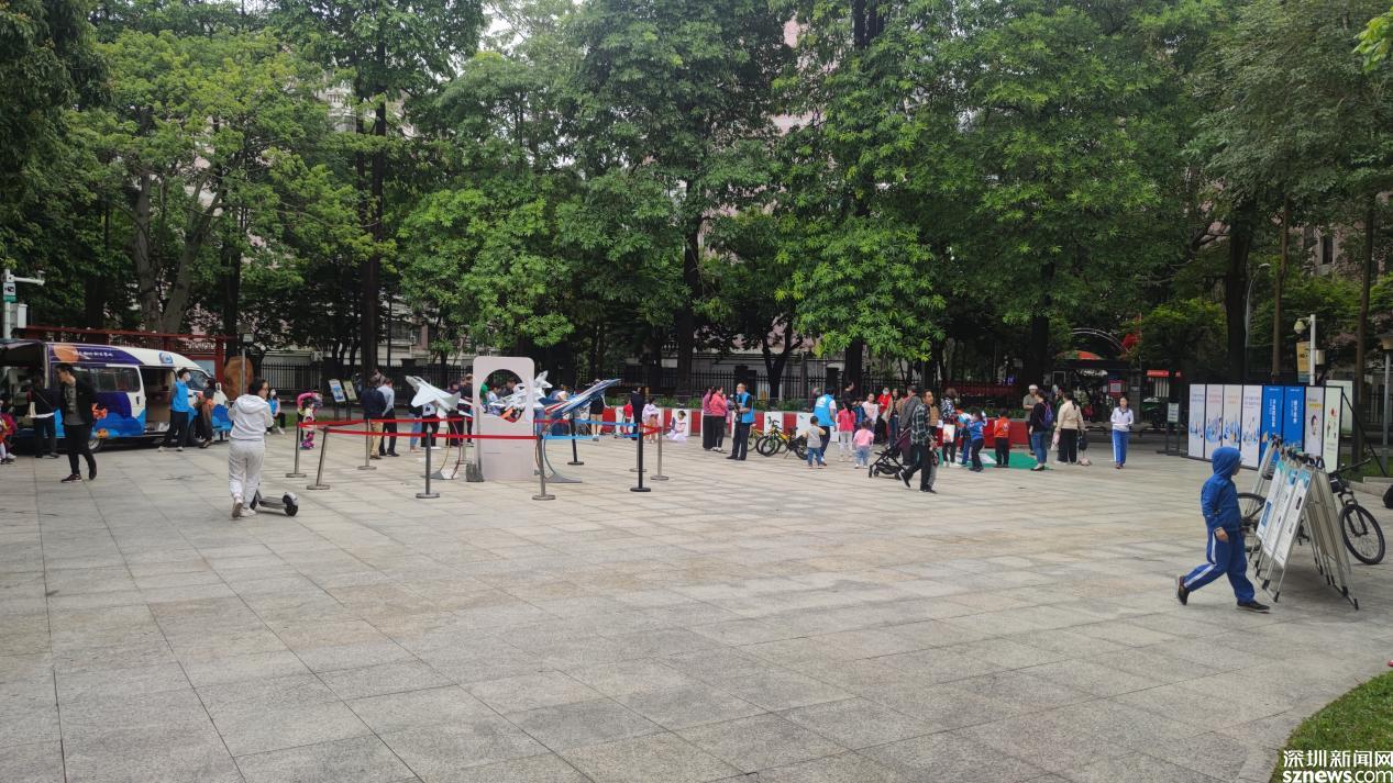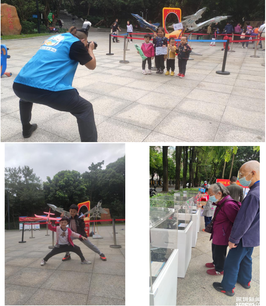 10月23日,在粤海街道科技园社区开展了“建党百年·国防成就展”第三场民生微实事活动,于社区空地举办“国防成就展”。展会上不仅陈列了各式各样大大小小的中国战斗机,还有1:10大比例飞机模型,展会现场还进行了手抛飞机竞赛、舰载机着舰比赛、弹射飞机体验等,同时将塞斯纳模拟飞行器、 VR体验等互动游戏项目带进社区,还有专业的拍立得服务,为居民们提供免费的精彩瞬间照片。借助各种静态航模展览与游戏互动体验的方式增加居民的航空国防兴趣,提高社区的科技氛围。本场活动累积参与社区居民300人,现场航空气氛分外浓厚。