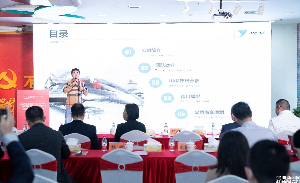在最后的项目路演资本对接会环节,代表无人机产业链创业团队的深圳市蜉飞科技有限公司CEO李晓亮和代表生命健康创业团队的深圳市柯林健康医疗有限公司研发总监周宏伟分别进行了项目路演。