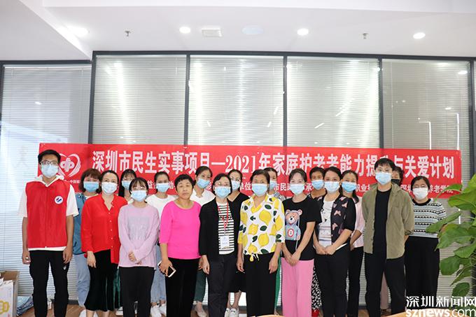 为推动《决定》更好落地和《深圳经济特区养老服务条例》的贯彻实施,深圳启动了“2021年深圳市家庭护老者能力提升与关爱计划”等系列赋能养老服务活动,“2021年深圳市家庭护老者能力提升与关爱计划”由中国福利彩票公益金资助,旨在通过对家庭护老者照顾能力的培训,不断夯实家庭在养老服务中的基础作用,让更多老人在家庭中得到更有质量的照护服务,不断提高老年人及其子女获得感、幸福感、安全感,形成代际和谐、敬老养老的社会氛围。在今年内,将完成10000名家庭护老者的能力提升培训。目前,“2021年深圳市家庭护老者能力提升与关爱计划”已先后在光明、盐田、大鹏、龙华、罗湖、福田、宝安、坪山、龙岗等开展。