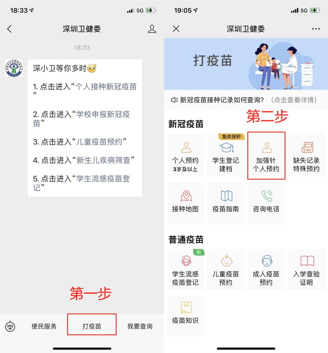 ②在菜单栏点击【打疫苗】-【加强针个人预约】,填写信息并预约即可。