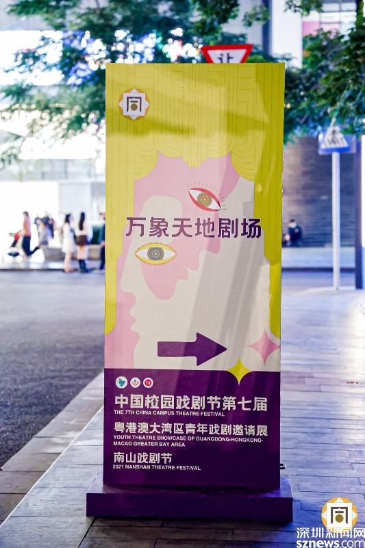 即日起至12月2日,本次戏剧节共计推出24台精彩剧目、27场线下演出、16场线上展演、3天户外演出、3场戏剧论坛及讲座。本届戏剧节以“同”为主题,分为“第七届中国校园戏剧节”“粤港澳大湾区青年戏剧邀请展”“论坛及讲座”以及户外演出4大板块内容,遴选了来自全国各大高校、港澳台及深圳本土和内地有代表性的37支戏剧表演团队参加演出。