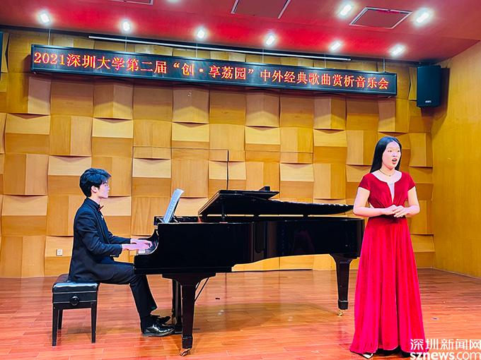 读特客户端•深圳新闻网2021年12月11日讯(记者 王志明)东方遇上西方,现代交织传统……现场碰撞出感动的艺术火花。12月10日晚上,第二届深圳大学“创·享荔园”中外经典歌曲赏析音乐会在深圳大学音乐厅举行,让观众们度过了一个难忘而优雅的周末文艺时光。