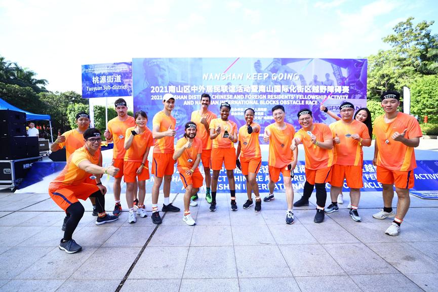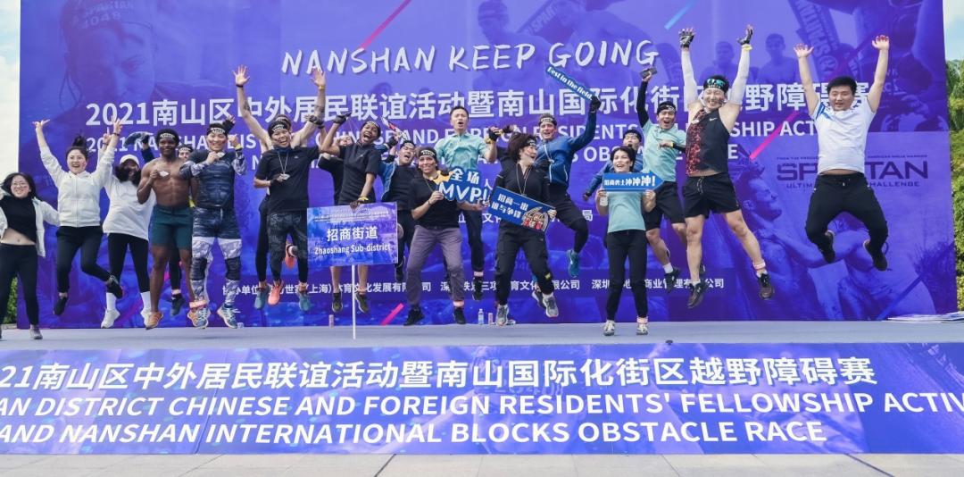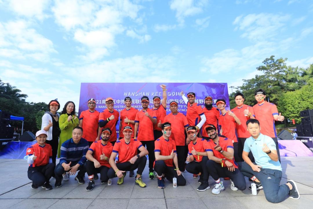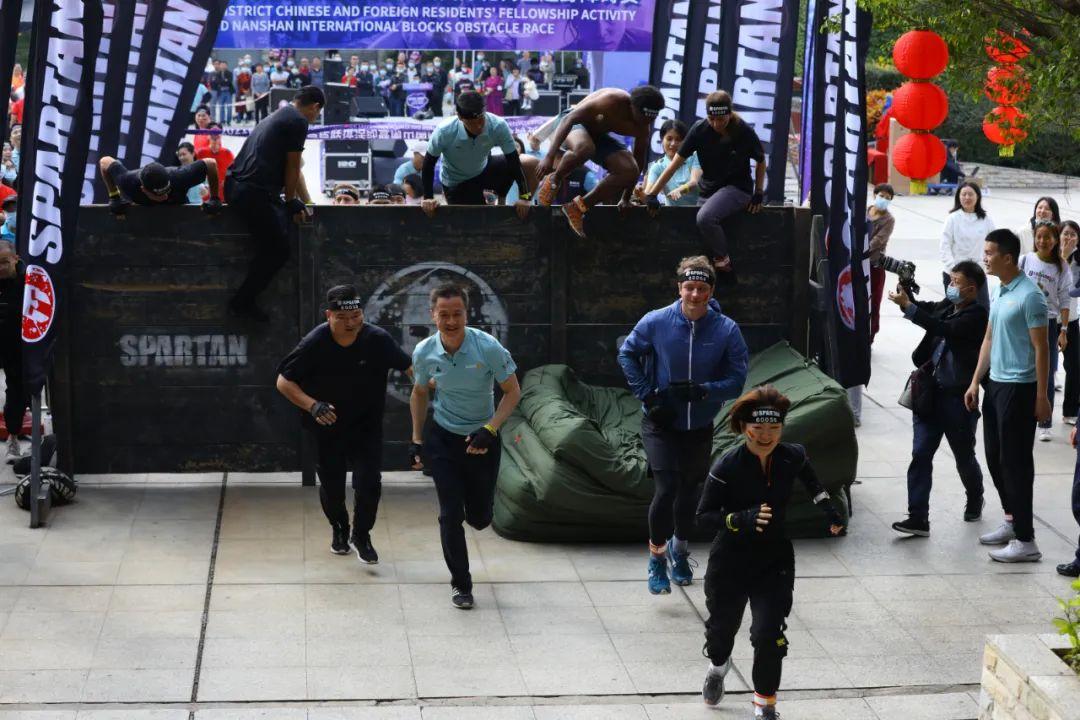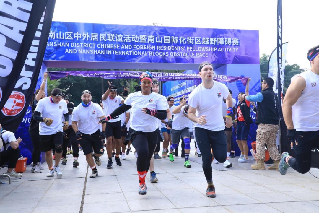 启动仪式之后,比赛正式打响,来自粤海街道、桃源街道、招商街道、蛇口街道以及南山区各级机关单位等中外居民代表组成多支跑团队,以体育为媒,在冬日融暖的阳光下,一起挥洒汗水、翻越障碍,用勇气和双手获得荣誉,并最终悉数安全完赛。