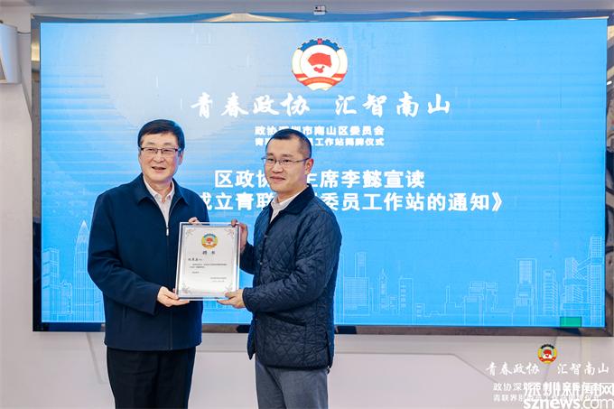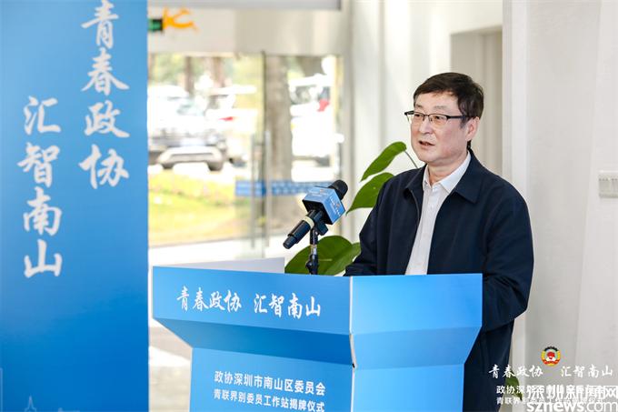 揭牌仪式由区政协副主席黄险峰主持。区政协副主席李懿宣读南山区政协青联界别委员工作站成立文件。区政协主席陈军为工作站特邀指导员、站长、副站长颁发聘书并讲话。