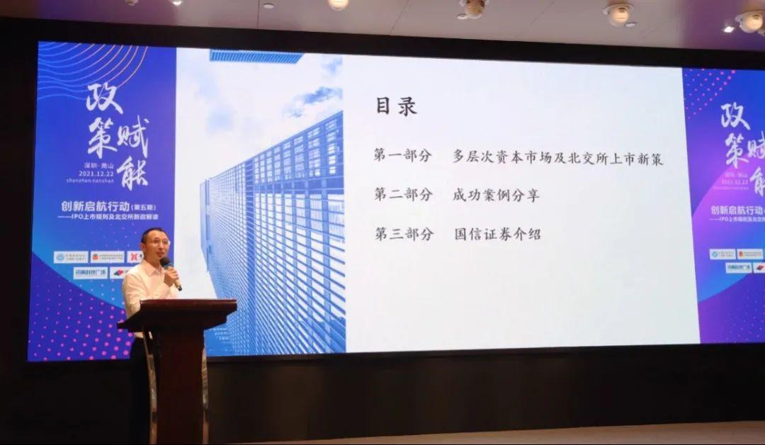 读特客户端•深圳新闻网2021年12月24日讯(记者 王志明)为帮助企业了解我国资本市场的最新政策,进一步加大对北交所设立的宣传力度,帮助企业及时把握北交所及注册制所赋予的中国资本市场改革新动向,同时掌握注册制下企业IPO上市规范运行实操。