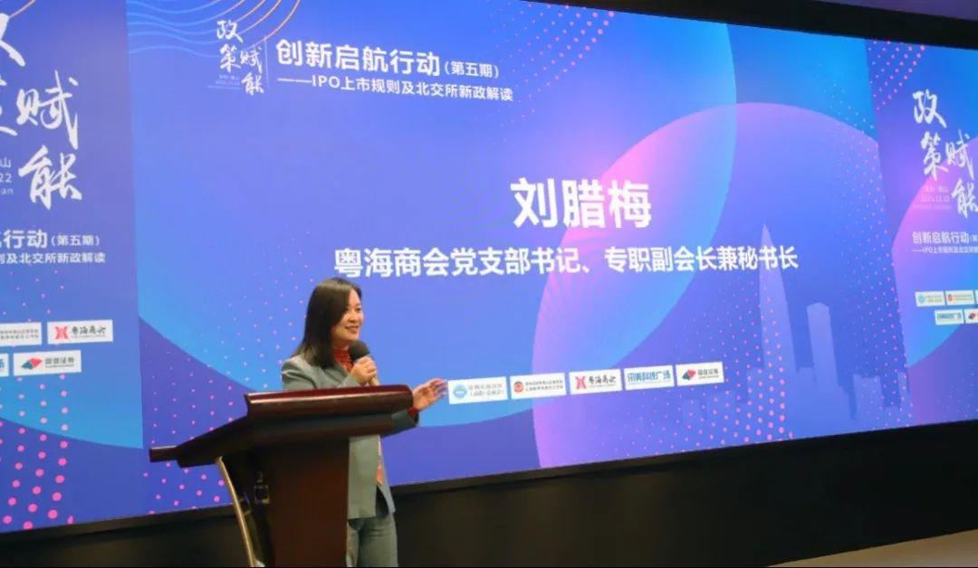 2021年12月22日下午,“政策赋能,创新启航行动”(第五期)——IPO上市规则及北交所新政解读会在讯美科技广场成功举行。粤海商会党支部书记、专职副会长兼秘书长刘腊梅,粤海商会副会长、深圳市讯美科技有限公司副总经理张志林,国信证券泰九分公司副总经理景佳及风变科技、未来穿戴、瑞沃德、追一科技、德赛微电子、比科斯电子、九章数据等六十余家企业代表出席活动。