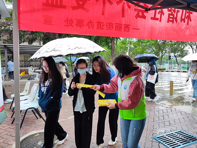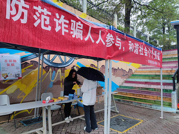 读特客户端•深圳新闻网2021年12月28日讯(记者 王志明 通讯员 刘晓彤)为深入推进校园毒品、电信诈骗问题等治理,加强学生自我防范意识,提高禁毒反诈的宣传影响力。在南山区禁毒办和西丽街道综合治理办的大力支持之下,12月27日上午,西丽街道联合西丽派出所与温馨禁毒社工在深圳职业技术学院开展“禁毒反诈齐步走,安全防范入校园”为主题的禁毒反诈宣传活动。