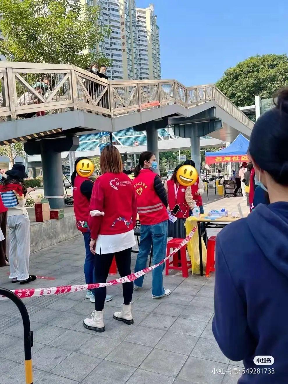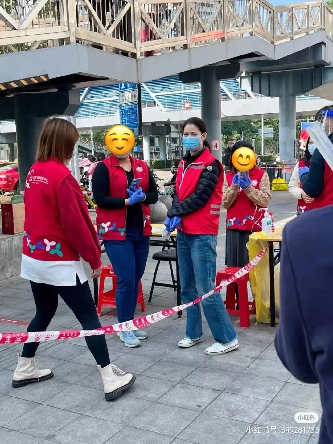 社区工作人员表示,早上9点许,袁咏仪就和朋友俩人来到核酸采样点,在了解清楚核酸采样的整个流程后,就领到了在核酸采样等待区发放检测凭证的工作。“做得非常认真,到了午餐点,她让其他工作人员先吃,自己晚点吃。”“跟社区其他志愿者一样,她就是一个热心志愿服务的普通市民。”工作人员对记者说,但与其他志愿者不同,袁咏仪说话较少,尽量不说长句,因为她的港腔太重了,怕引起关注。