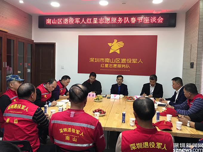 读特客户端·深圳新闻网2022年1月21日讯(记者 王志明 通讯员 廖秀喜 冯帅)2022年1月20日下午,南山区红星志愿服务队在南山区退役军人服务中心举行春节座谈会。出席本次会议的有南山区退役军人事务局局长薛声波、南山区退役军人服务中心主任李勇等领导,南山区退役军人红星志愿服务队队长林刚、教导员王刚等队委陪同。