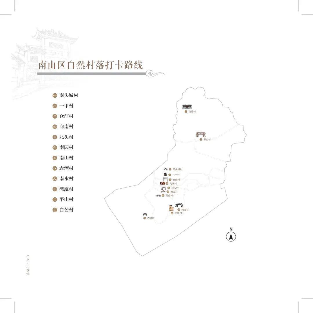 南图花费两年时间,重现历史文献、搜集珍贵史料、实地采访村民,以《年书·村落篇》的形式娓娓道来独属于南山的历史文化传承与脉络,按照八大街道自然村落分布情况绘制打卡路线、整合节事日历,清晰明了,双向对照立体呈现这片土地的古今印记。
